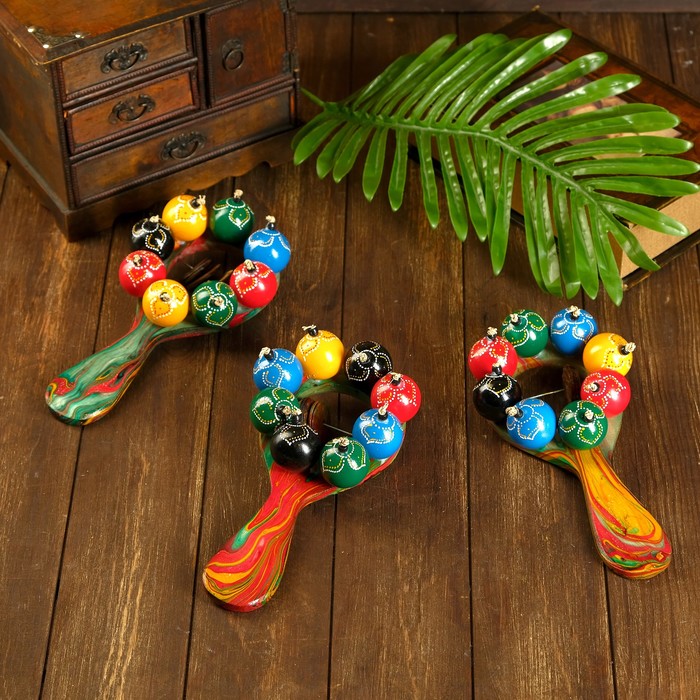 Сувенирный музыкальный инструмент "Маракас с шариками и пластинами" радужный 25х13х5 см МИКС