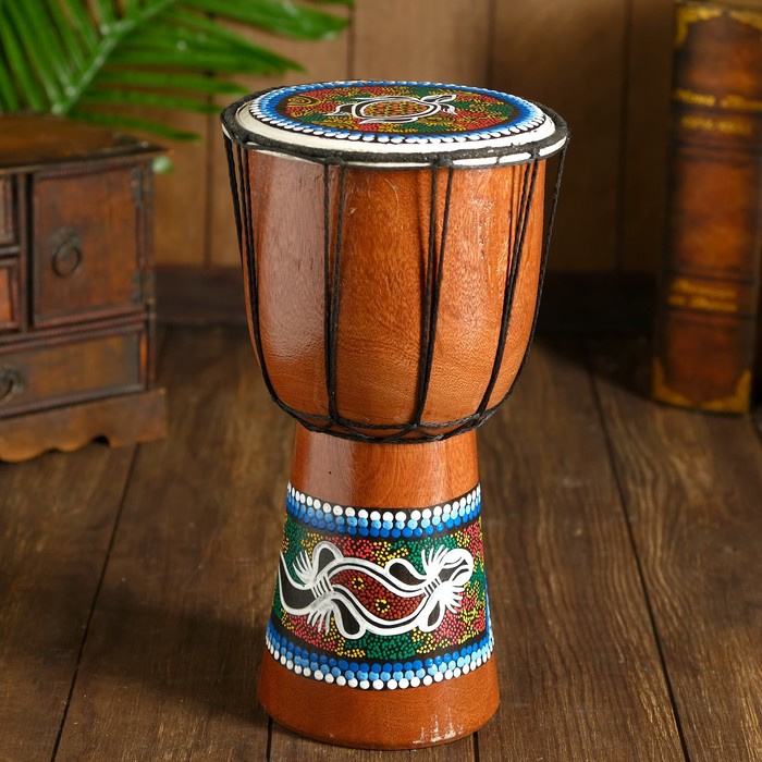 Сувенирный музыкальный инструмент "Барабан Джембе ящерица" 14x14x30 см МИКС