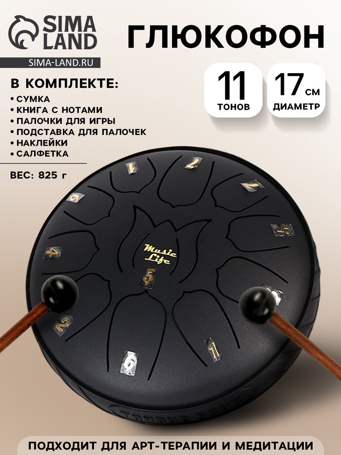 Глюкофон - музыкальный инструмент, Music Life, чёрный, 11.4 см, 8 лепестков