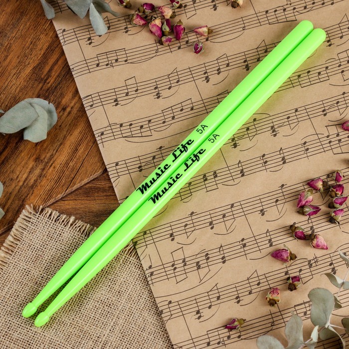 Барабанные палочки Music Life, 5A, нейлон, зеленые