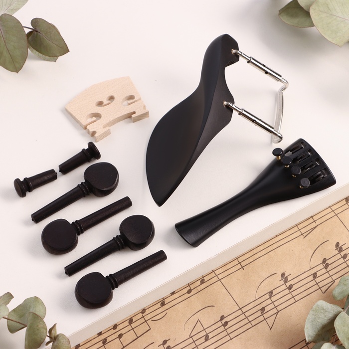 Набор аксессуаров для скрипки: Подставка, Колки, подбородник, струнодержатель, 3/4