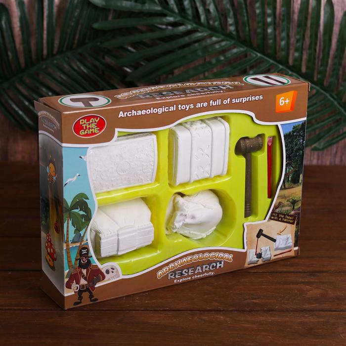 Раскопки «Сокровища пиратов», набор 4 брикета, молоток, долото