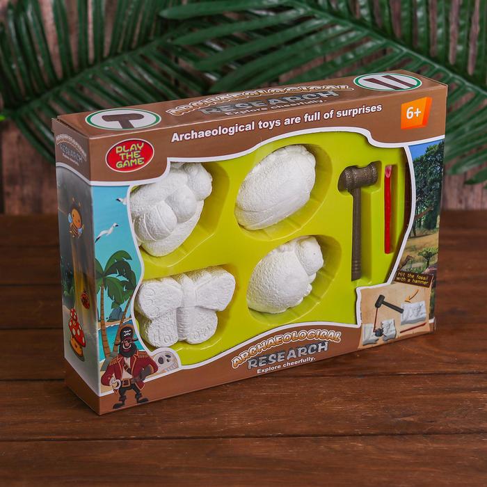 Раскопки «Динозавры», набор 4 брикета, молоток, долото