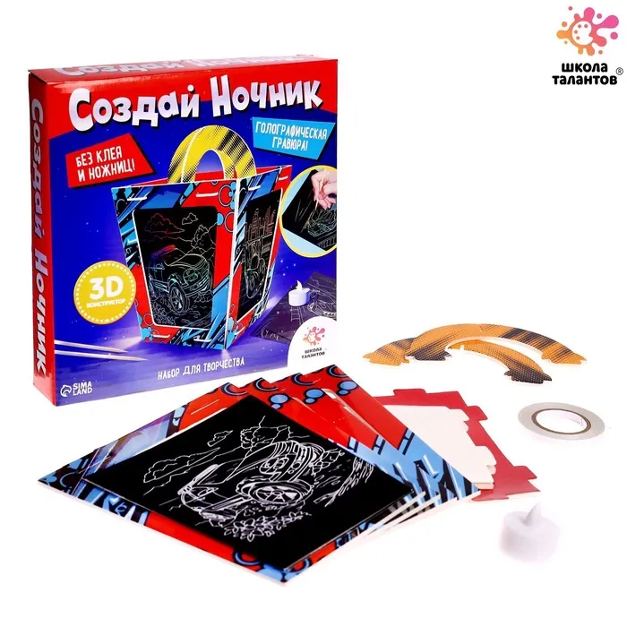 Ночник своими руками «Создай ночник с гравюрой. Машинки», 3Д конструктор, голографическая гравюра, набор для творчества
