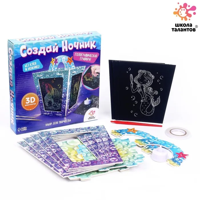 Ночник своими руками «Создай ночник с гравюрой. Русалочка», 3Д конструктор, голографическая гравюра, набор для творчества