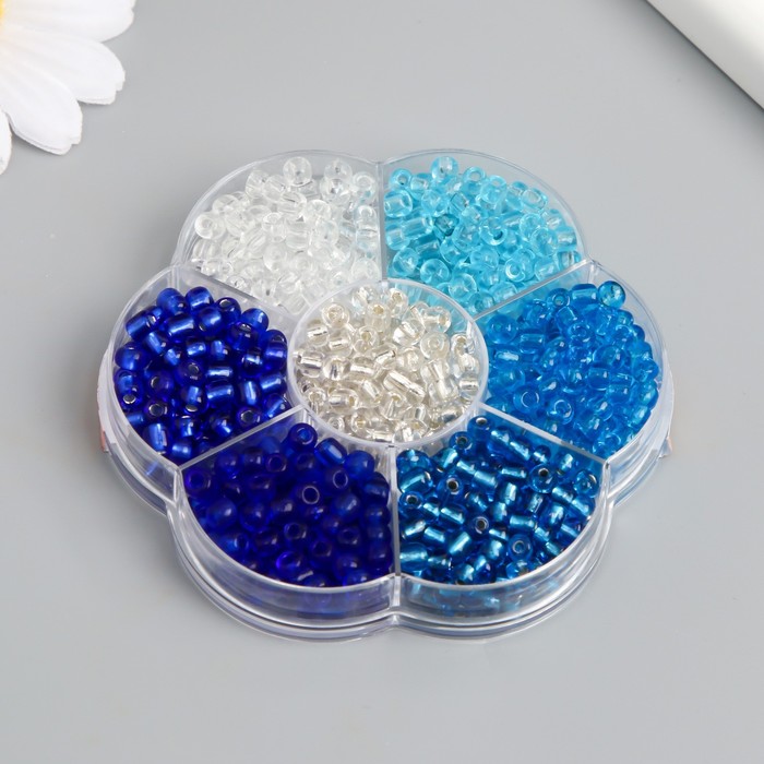 Бисер стекло 6/0 в цветке «Вода» цветной прозрачный 7 цветов х 8 г 8.2×8.2×2 см