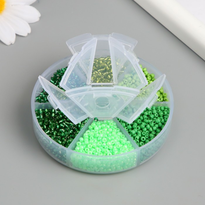 Бисер стекло 8/0 (3 мм) в шкатулке «Зелёный» 6 цветов х 10 г 8×8×2 см