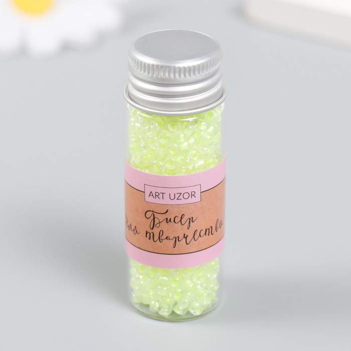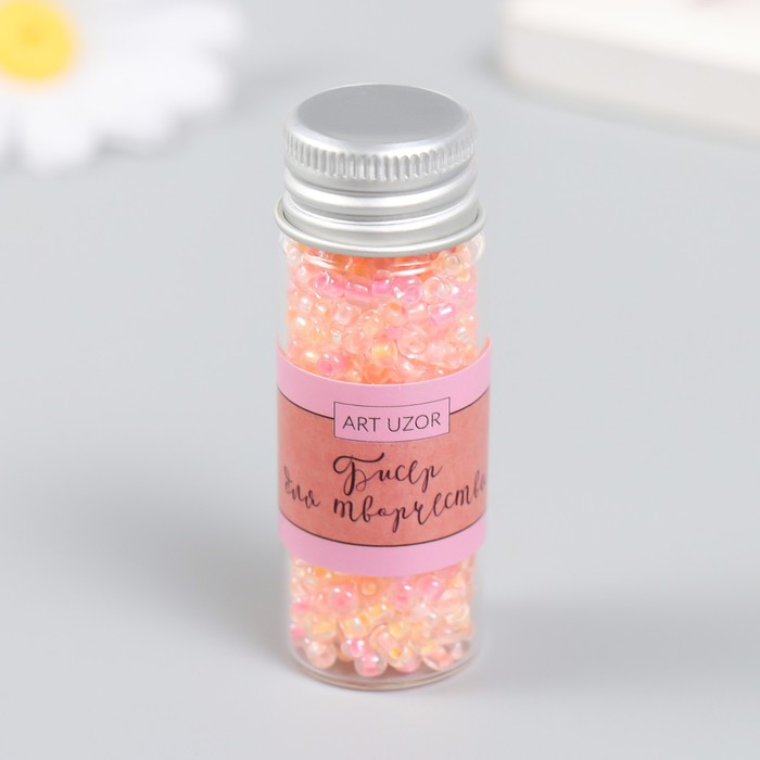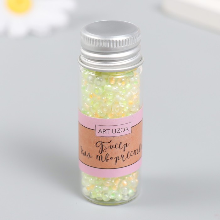 Бисер 8/0 в бутылочке «Полупрозрачный с . цв. серединой. Весна», светится под УФ 20 г, 6×2×2 см
