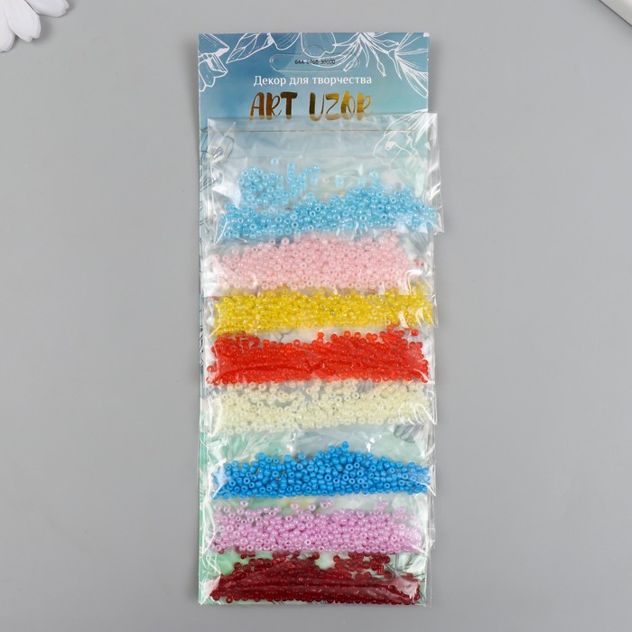 Бисер круглый размер 12/0 «Разноцветный» 8 цветов х 5 грамм 20×8 см