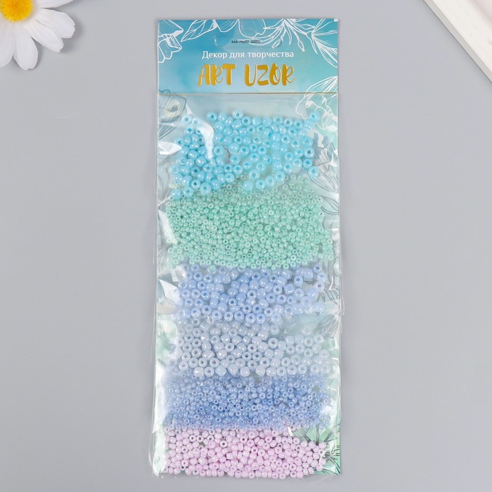 Бисер круглый 8/0 «Оттенки неба», 5 цветов × 10 г, 20×8×0.7 см