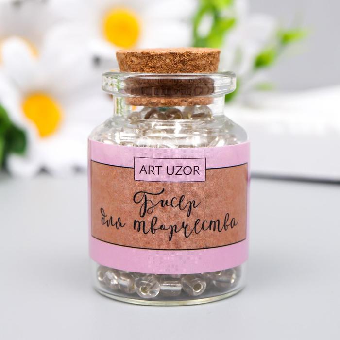 Бисер 8/0 в бутылочке «Полупрозрачный», светится под УФ голубым 20 г, 6×2×2 см