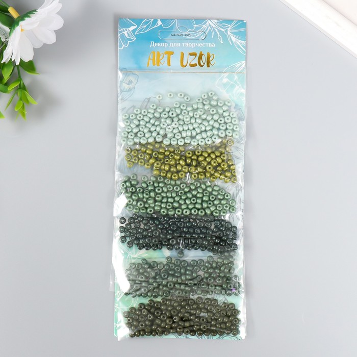 Бисер круглый 6/0 «Оттенки леса», 6 цветов × 10 г, 20×8 см