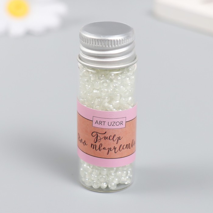 Бисер круглый 12/0 в бутылочке «Белый», прозрачно-цветной, 20 г