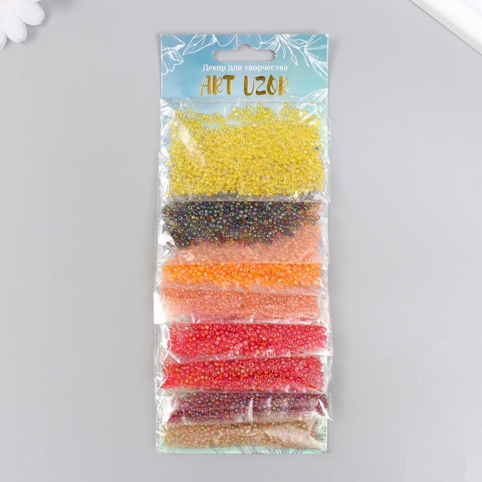 Бисер круглый 12/0 «Красно-жёлтый», перламутр 8 цветов × 10 г, 20×8 см