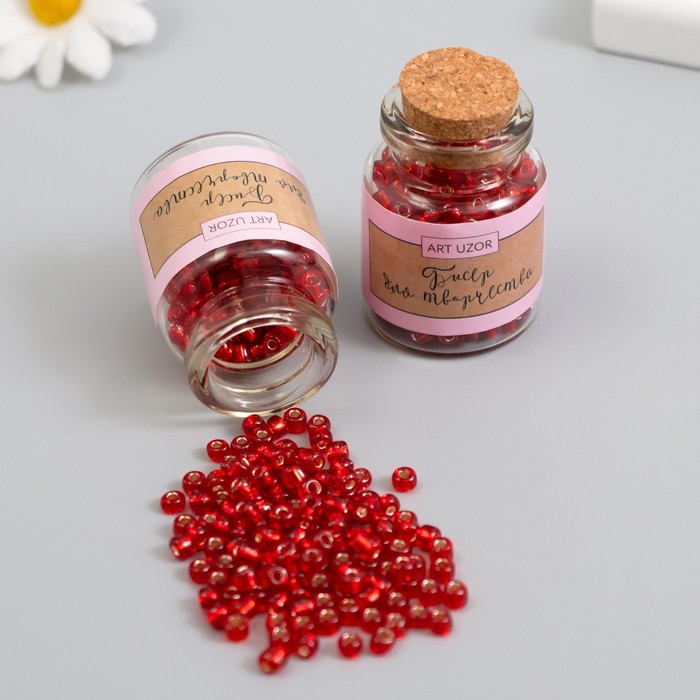 Бисер круглый 6/0 в бутылочке «Красный», прозрачно-цветной 2×20 г, набор 2 шт.