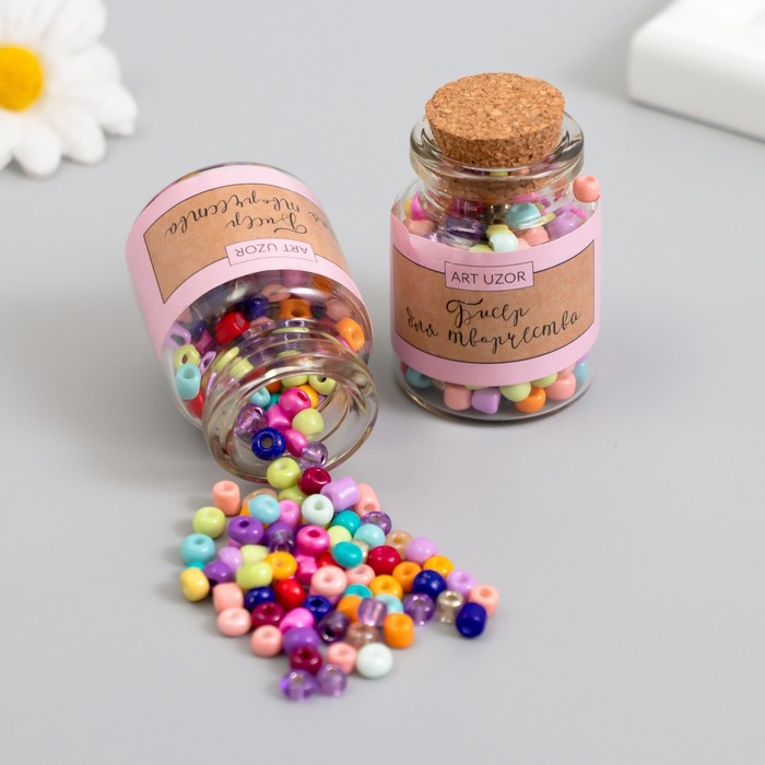 Бисер круглый 6/0 в бутылочке «Разноцветный», 2×20 г, набор 2 шт.