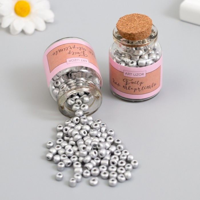 Бисер круглый 6/0 в бутылочке «Серебро», 2×20 г, набор 2 шт.