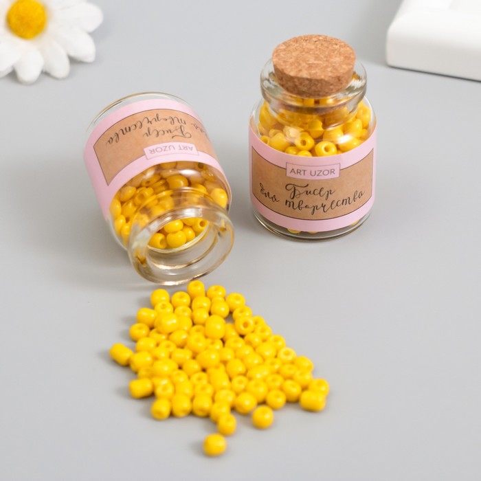 Бисер круглый 6/0 в бутылочке «Яркий лимон», 2×20 г, набор 2 шт.