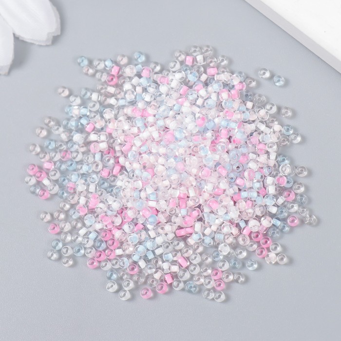 Бисер стекло 12/0 «Прозрачный. Цветная серединка. Розовый и голубой», 10 г