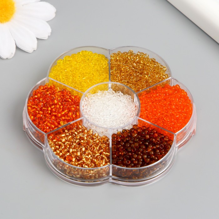 Бисер стекло 12/0 в цветке «Земля», цветной прозрачный 7 цветов × 8 г, 8.2×8.2×2 см
