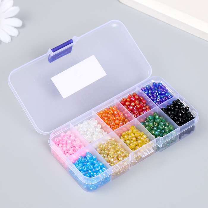 Бисер стекло 6/0 в шкатулке 10 делений «Разноцветный», 1 деление=10 г, 12.8×6.5×2.2 см