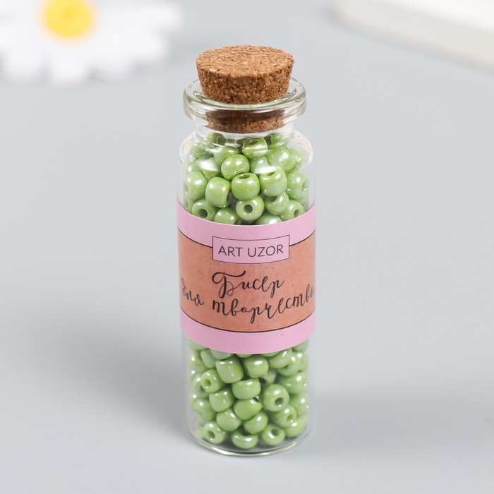Бисер 6/0 в бутылочке «Спаржа», 20 г, керамический блеск, 6×2×2 см