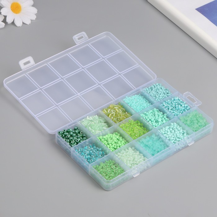 Бисер стекло 6/0, 8/0, 12/0 в шкатулке «Зелёный», стеклярус, 15.5×9.5×1.6 см