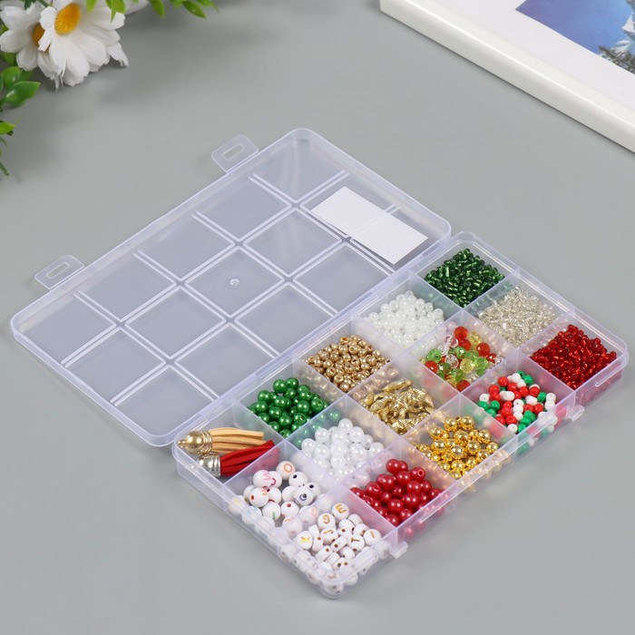 Бисер стекло 6/0, 8/0 в шкатулке «Новогодний», бусины и кисточки, 10×17.5×2 см