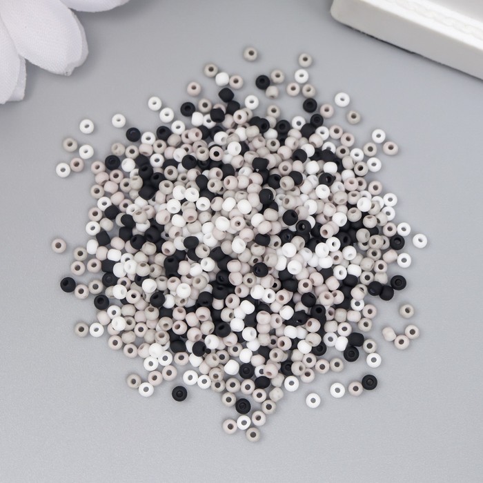 Бисер стекло 11/0 «Матовый. Меланж чёрно-белый», 10 г