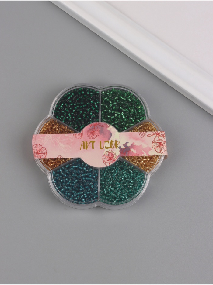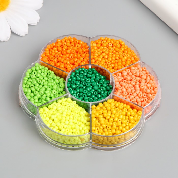 Бисер стекло 12/0 в цветке «Цвета лета» цветной 7 цветов х 8 г 8.2×8.2×2 см