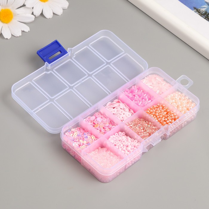 Бисер стекло 8/0, 12/0 в шкатулке «Розовый», бусины, стеклярус и пайетки, 13×6.5×2.3 см