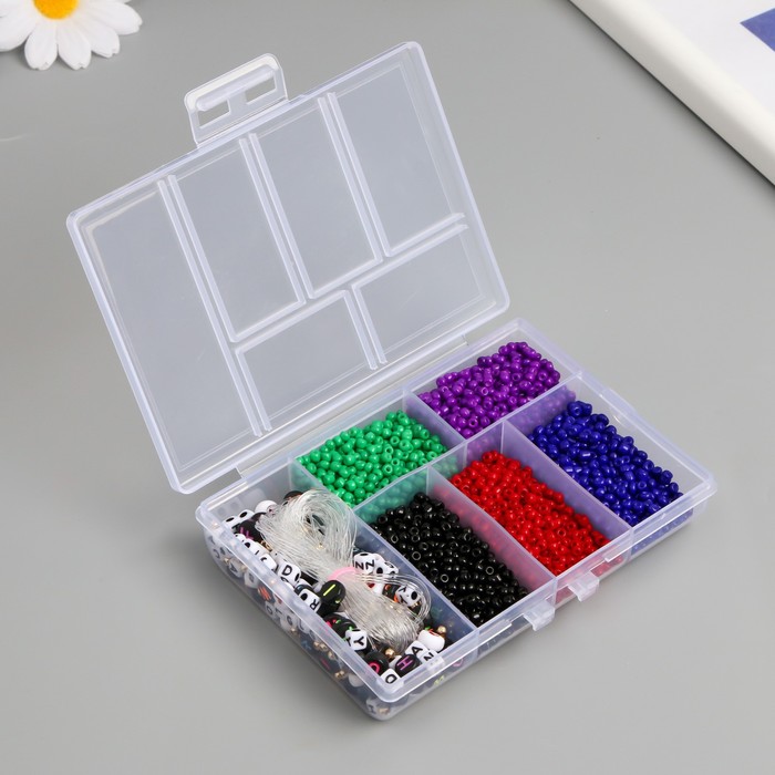 Бисер стекло 8/0 в шкатулке «Тёмный», бусины + нить 0.8 мм, 5 м, 12×8.4×2.2 см
