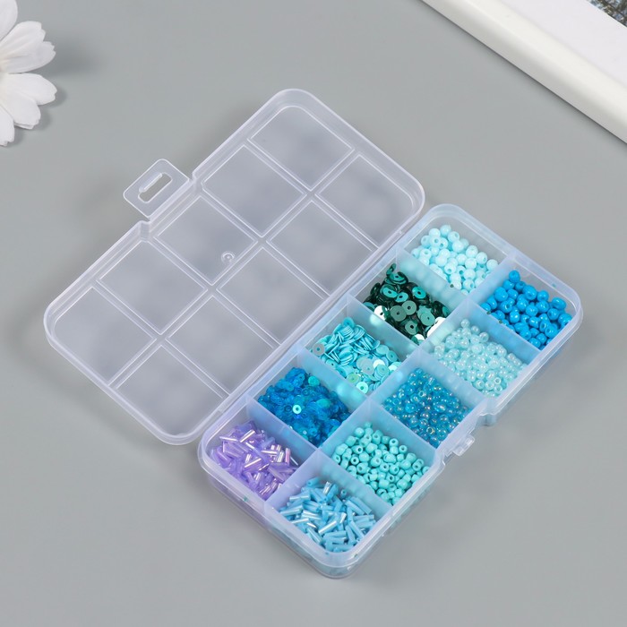 Бисер стекло 6/0, 12/0 в шкатулке «Голубой», стеклярус и пайетки, 12.5×6.5×2 см