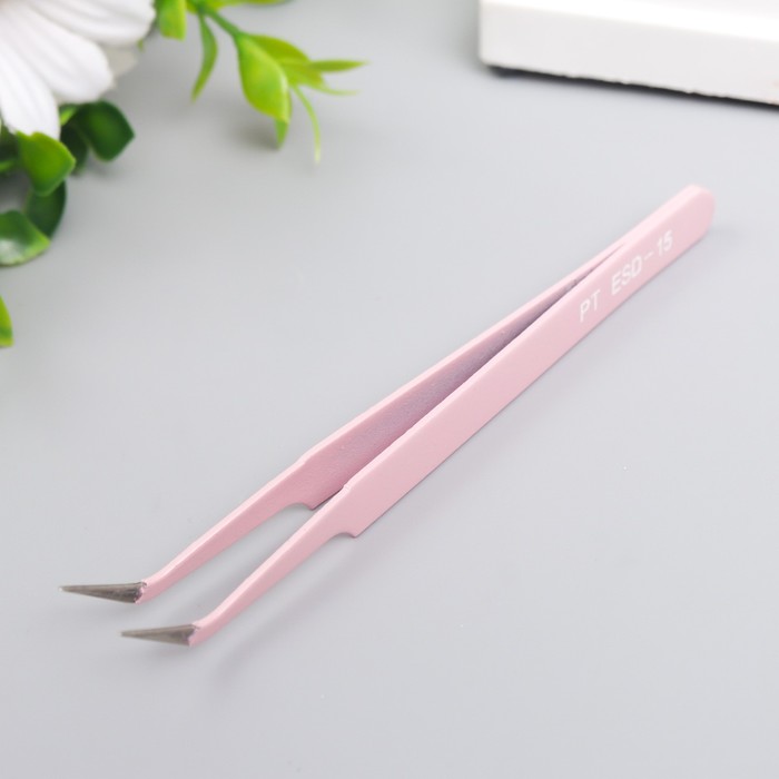 Пинцет для творчества прямой "Зефирно-розовый" изогнутый 12,1х1 см