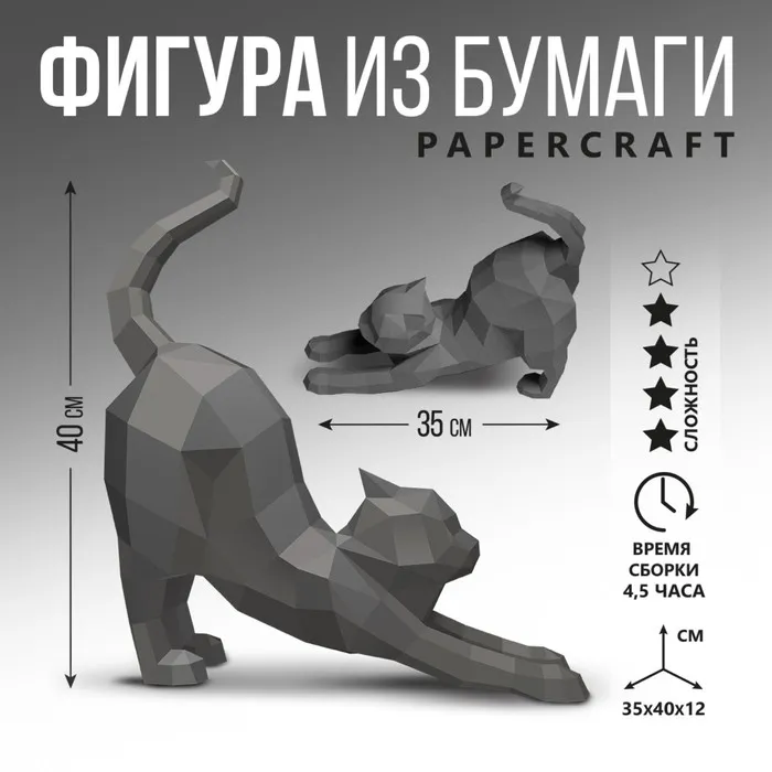Полигональная фигура из бумаги «Кошка», 35 х 40 х 12 см