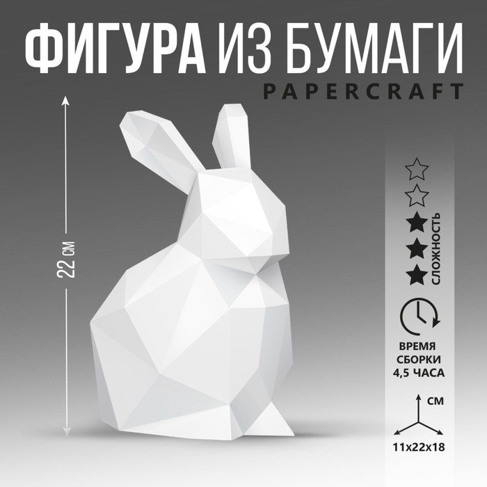 Полигональная фигура из бумаги «Кролик», 11 х 22 х 18 см