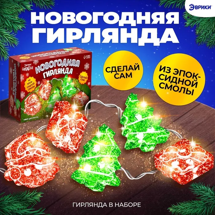 Набор для опытов «Новогодняя гирлянда из эпоксидной смолы», ёлочки