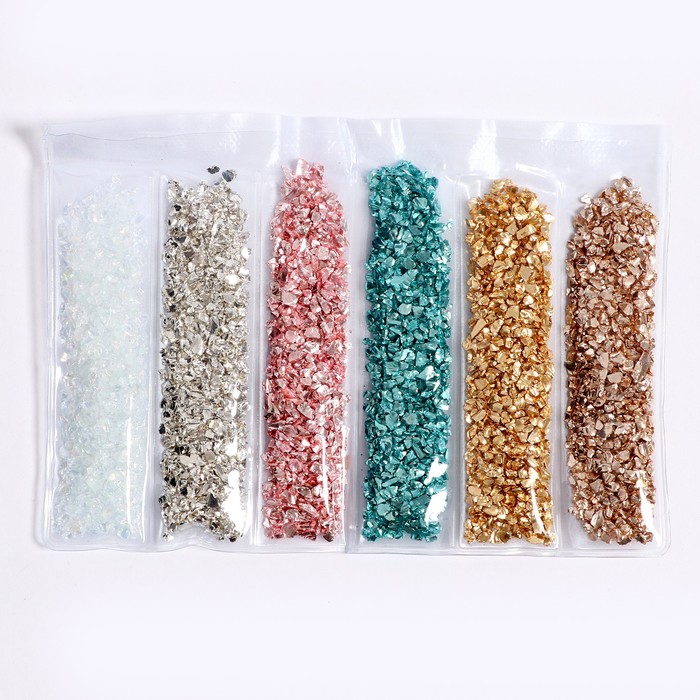 Крошка стеклянная для эпоксидной смолы, набор 6 цветов, вес 1 цвета — 5 г