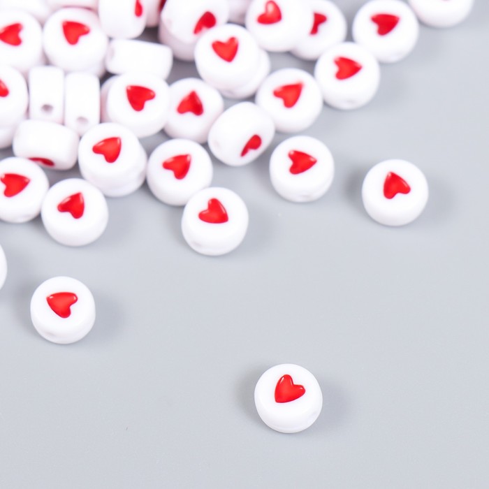 Набор бусин для рукоделия и плетения «Арт Узор. Красное сердечко в круге», 20 г, пластик, 0.7×0.7 см
