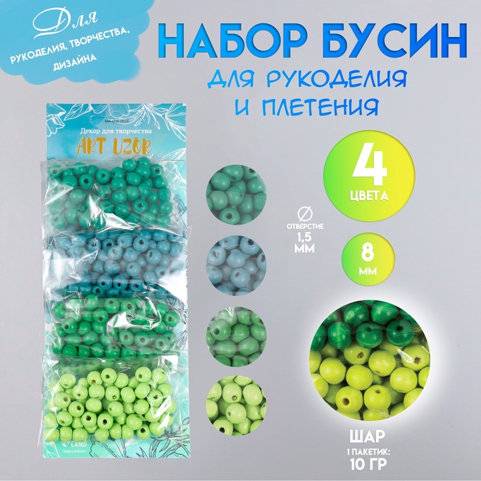 Набор бусин для рукоделия и плетения «Арт Узор. Луговая гамма», дерево, d-0.8 см, 4 цвета × 10 г