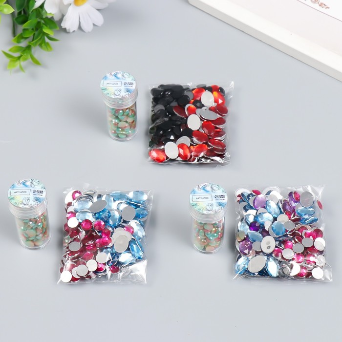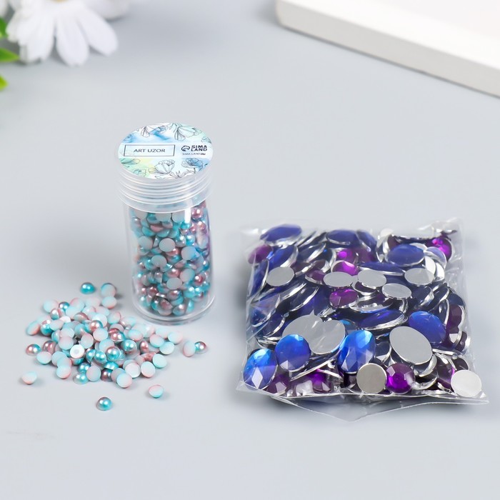 Декор «Полубусины и стразы. Градиент голубой крем», d=6 мм, 10 г, 200 шт., 5×2.5 см, МИКС