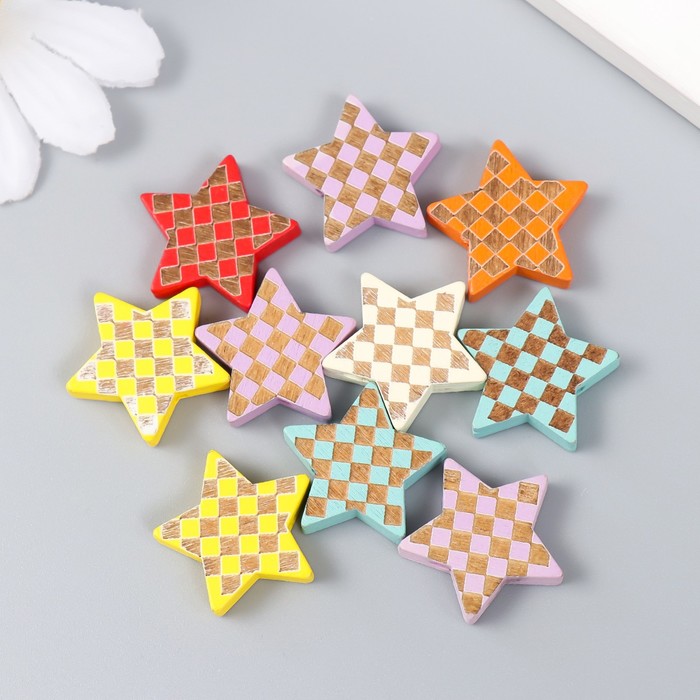 Набор бусин для рукоделия и плетения «Арт Узор. Звезда в клеточку», 10 шт., дерево, 2×2×0.5 см
