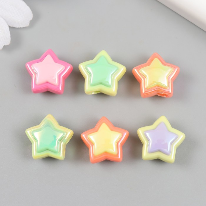 Набор бусин для рукоделия и плетения «Арт Узор. Звёздочка», 6 шт., цветная с перламутром, 1×1.7×1.7 см, МИКС