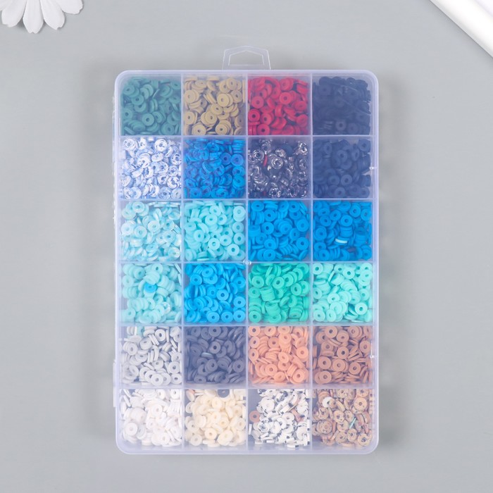 Декор для творчества пластик «Палитра синего и голубого», d=0.6 см, набор 24 цвета, 18.5×13×2 см