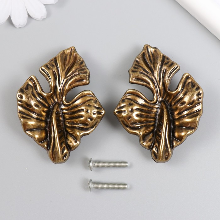 Ручка для шкатулки латунь "Экзотические листья" набор 2 шт 5х7х2 см