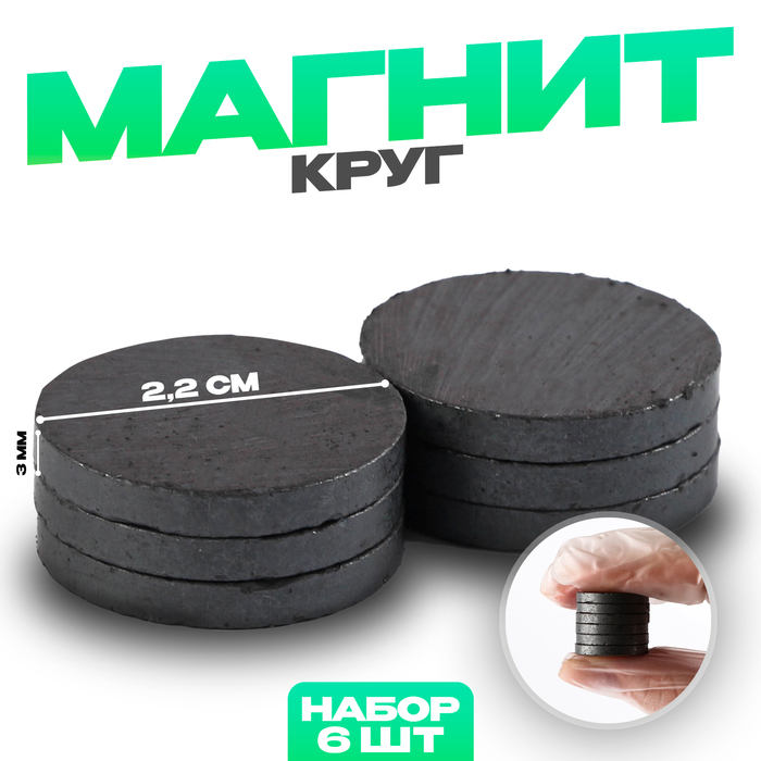 Магнит «Круг» набор 6 шт., размер 1 шт. — 2,2 см