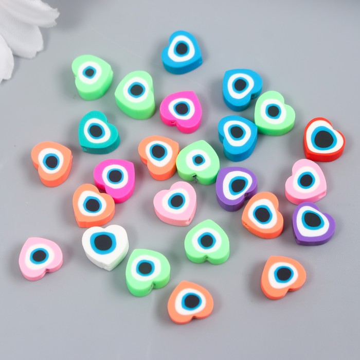 Набор бусин для рукоделия и плетения «Арт Узор. Сердечки от сглаза», 25 шт., цветные, PVC, 0.5×1×1.1 см