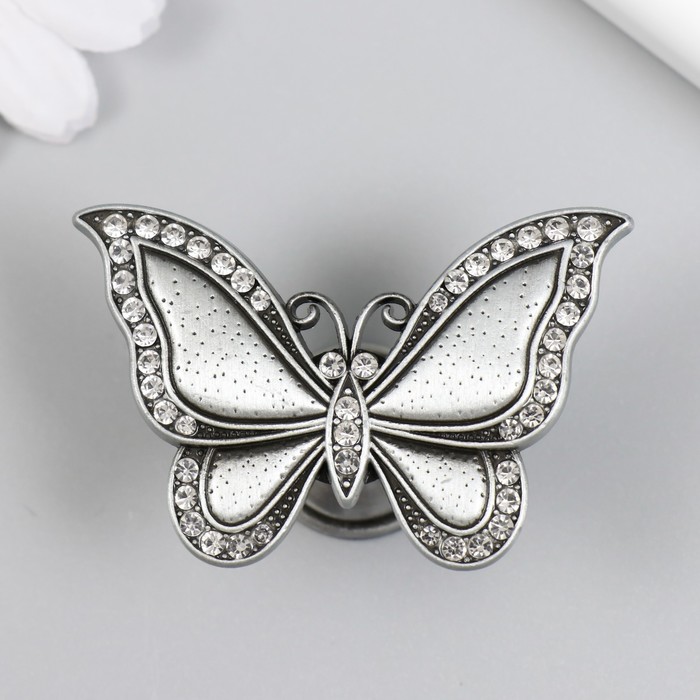 Ручка для шкатулки металл «Бабочка», стразы, состаренное серебро, 3.6×5.5×2.2 см