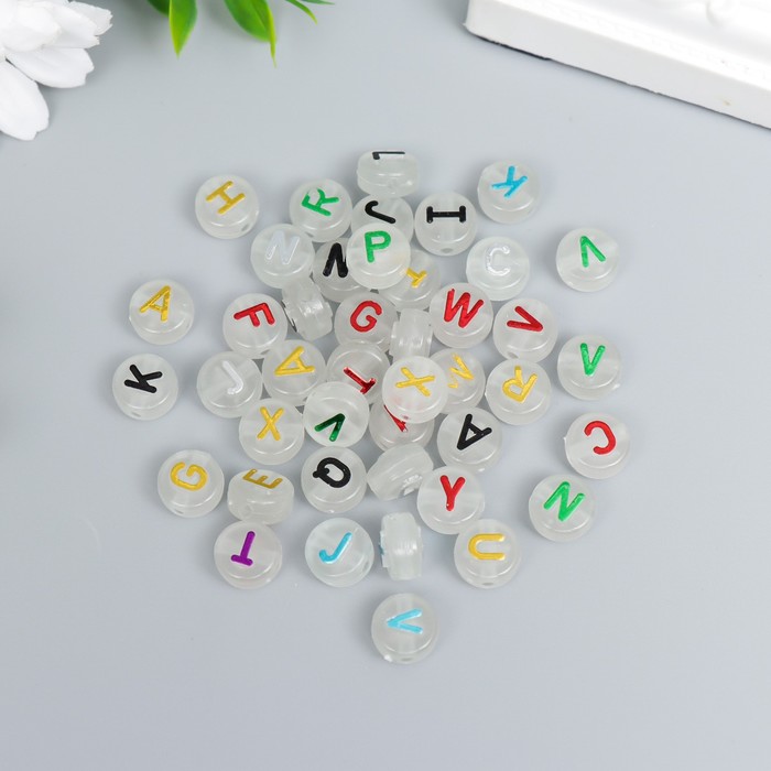 Бусины для творчества пластик «Английский алфавит», светится, набор 15 г, 0.6×1×1 см
