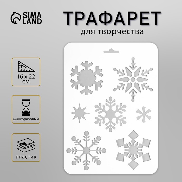 Пластиковый трафарет для творчества «Снежинки», шаблон, 16×22 см